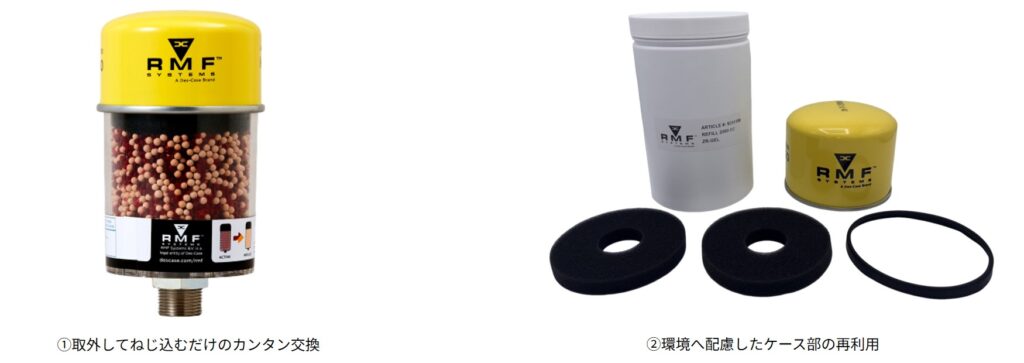 潤滑油・作動油タンクの清浄度維持を図りましょう。除湿剤付きエアブリーザ“KLシリーズ”は作動油・潤滑油タンク吸気口からの水分・微粒子侵入防止を目的としています。導入効果を保っていただくためには除湿剤・高精度フィルタの適切な交換管理が必要です。